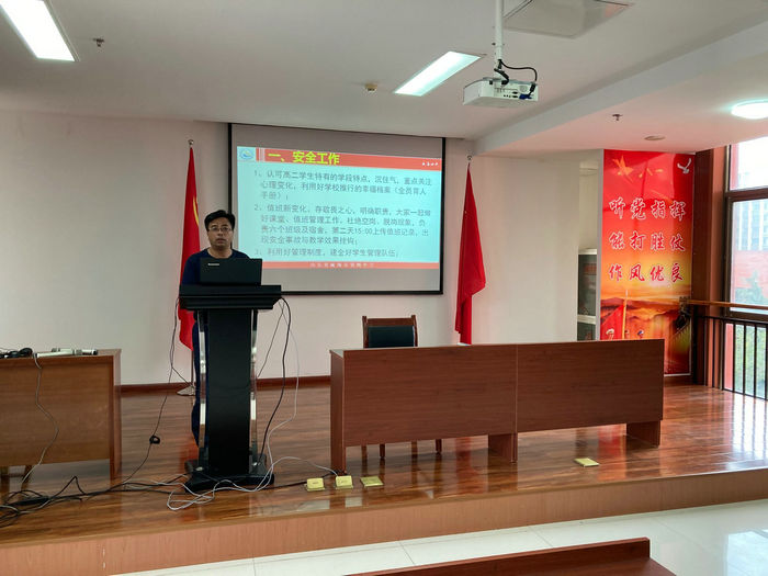 与此同时,桂主任还布置了高二级部第一学期工作要点。他指出,要把安全意识放在第一位,提高教学质量是教师永恒的追求。大家要掌握高二学生特有的学段特点,沉住气,重点关注学生心理变化,利用好学校推行的幸福档案工程深入细致做好学生学业成长工作;值班工作要存敬畏之心,明确职责,杜绝空岗、脱岗现象;利用好管理制度,建全好学生管理队伍;只有大家清楚任教班级学生属性,精准把握学情,在教学上精研讨、寻规律、找方法,备课组团队、班级教师团队、师生团队形成合力,就一定能形成良好的班风,良好的学风,良好的级部文化。