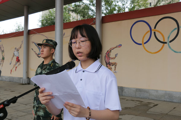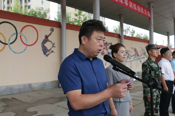 新生代表蔡思宝同学表示,路,就在我们的脚下;梦,就在我们的心中,汗水过后,苦累过后,2020级新生定会如笑傲苍穹的雄鹰,振翅于四中的蓝天碧海、青山白云。刘强副校长进行了军政训练动员讲话,激励同学们端正态度,严格训练,树立“我是军人,我一定能行”的信念。尊重教官,听从指挥,争取在有限的时间里培养自强、坚韧、果敢的优秀品质。团结一致,发挥集体的力量,顺利完成军训任务。